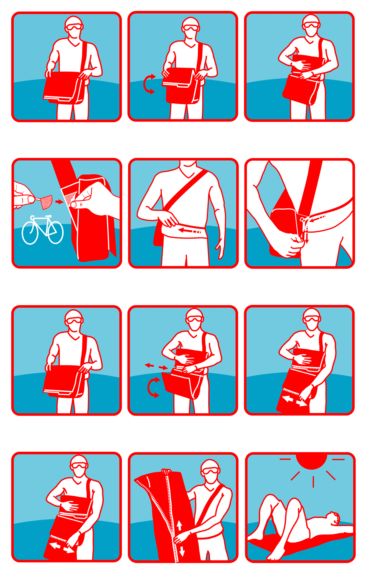 Taschen mit Wechselcover, welches als Decke benutzt werden kann
